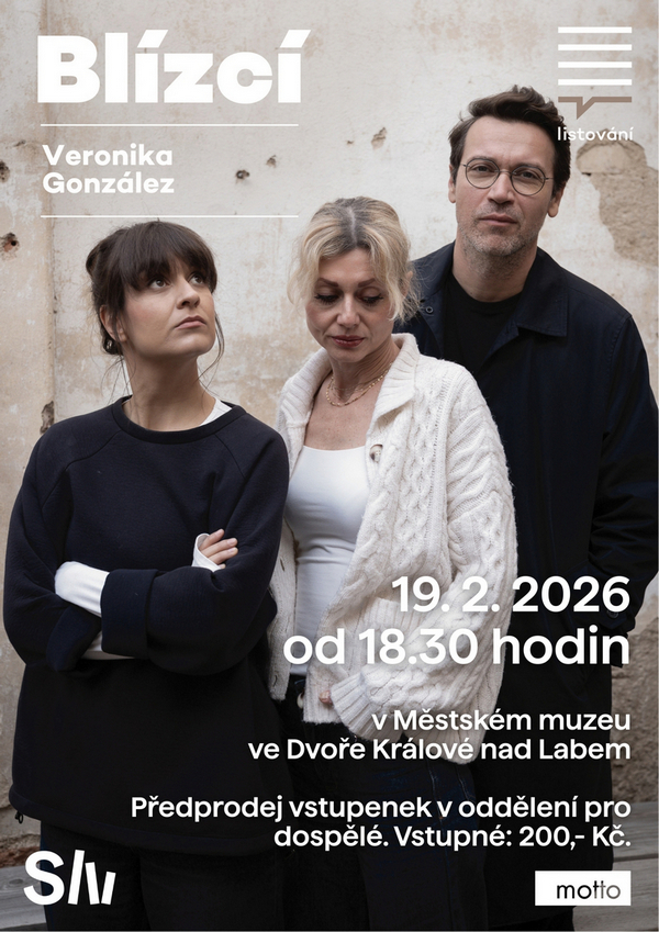 Další listování v muzeu se koná 19. února od 18.30 h. Kniha Blízcí od Veroniky Gonzáles. Vstupné činí 200 Kč.
