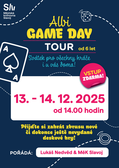 Městská knihovna Slavoj vás srdečně zve na odpoledne s deskovými hrami s Lukášem Nedvědem, které proběhne 13. a 14. prosince 2025 vždy od 14:00 hodin.