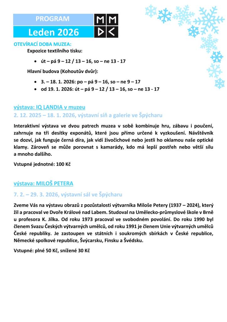 Program muzea v lednu
