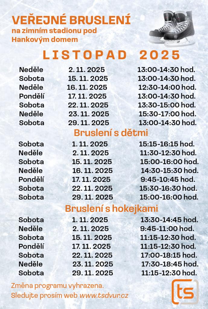 Veřejné bruslení na zimním stadionu pod Hankovým domem nabízí příležitost pro všechny milovníky ledu.